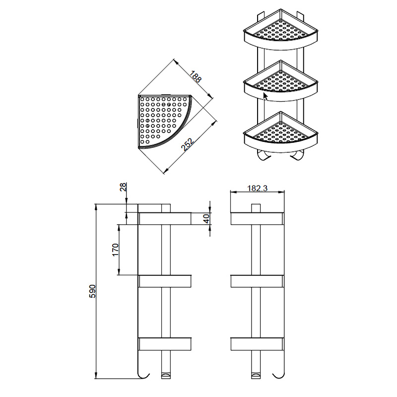—Полка угловая Azario трехэтажная, хром матовый (AZ-833-3)