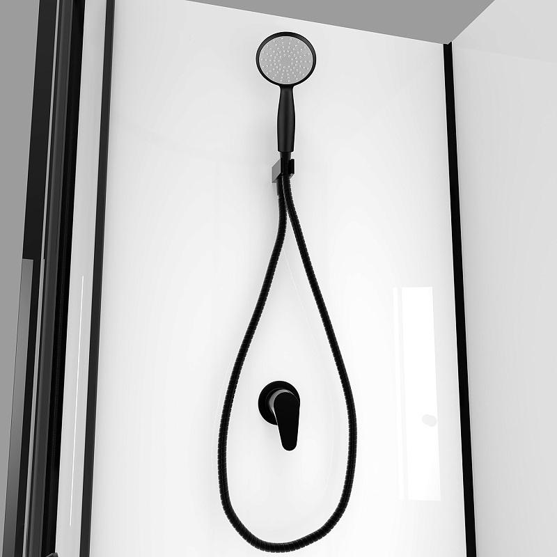 CS-21801Душевая кабина  90x90x(190+15)см c низким поддоном 15см, прозрачное закаленное стекло 5 мм, задние стеклянные стенки БЕЛЫЕ, профиль черный-мат., черный  ручной душ + шланг для душа + черный держатель (3 места)