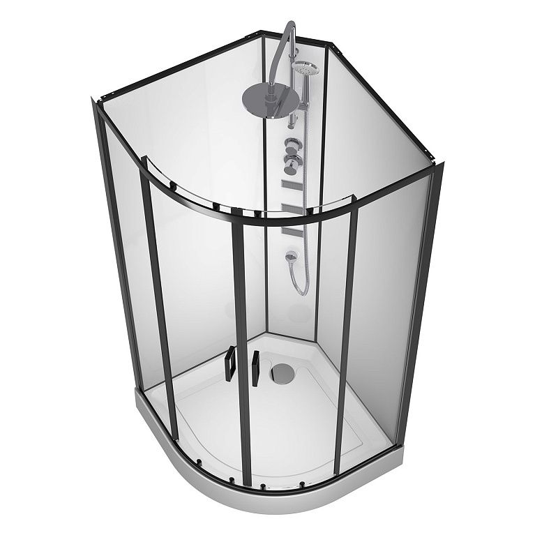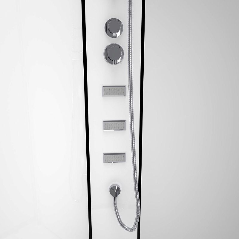 S-21811 Душевая кабина  90x90x(190+15)см с низким поддоном 15см, прозрачное закаленное стекло 5 мм,задние стеклянные стенки БЕЛЫЕ, профиль черный-мат., верхний душ, хромированный ручной душ + шланг для душа + хромированный держатель, кронштейн для душа. (3 места)