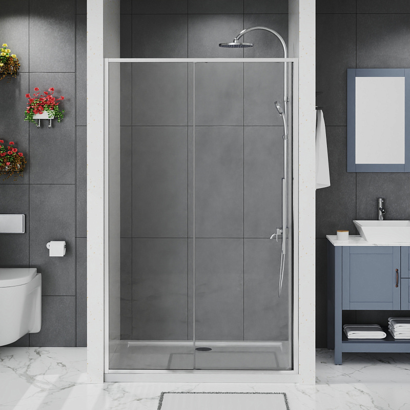 —Душевая дверь Azario Шанхай раздвижная 110х195, толщина полотна 6мм универсальная, цвет профиля хром