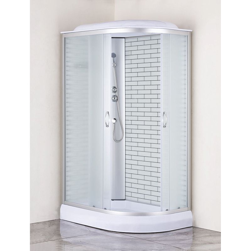 Стильная эстетика: Комбинация матового стекла (толщиной 4 мм) и белого кирпичного узора на поддоне создаёт современный, деликатный и очень уютный интерьер. Элегантные акценты хромированного алюминиевого профиля завершают гармоничный образ.