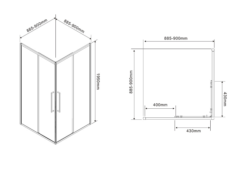 Душевой Уголок Квадратный, ВХОД С УГЛА, с двумя