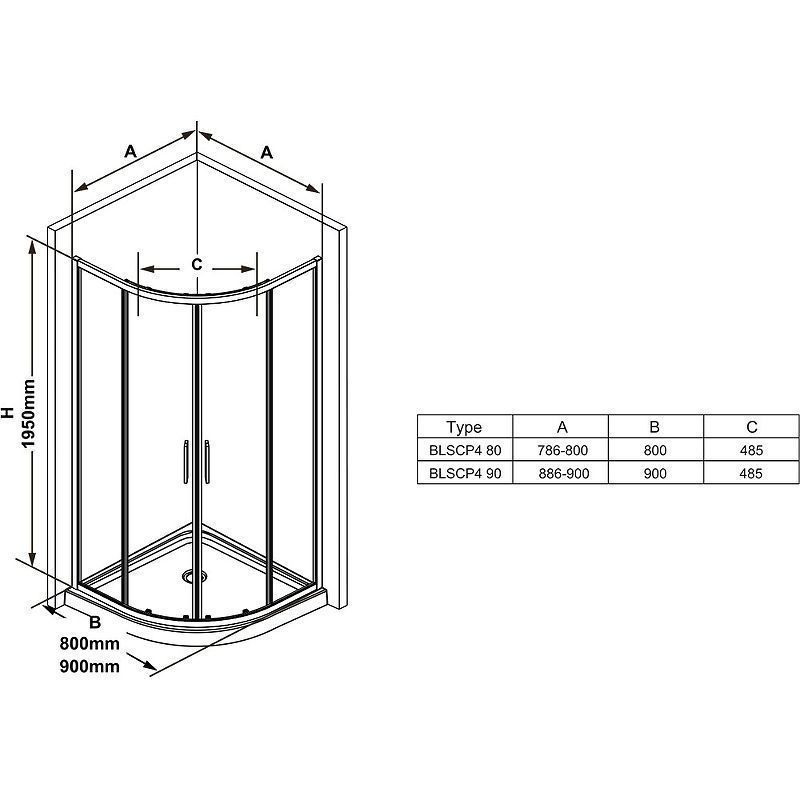 Душевой уголок Ravak Blix Slim 90x90 BLSCP4-90 профиль Хром стекло прозрачное