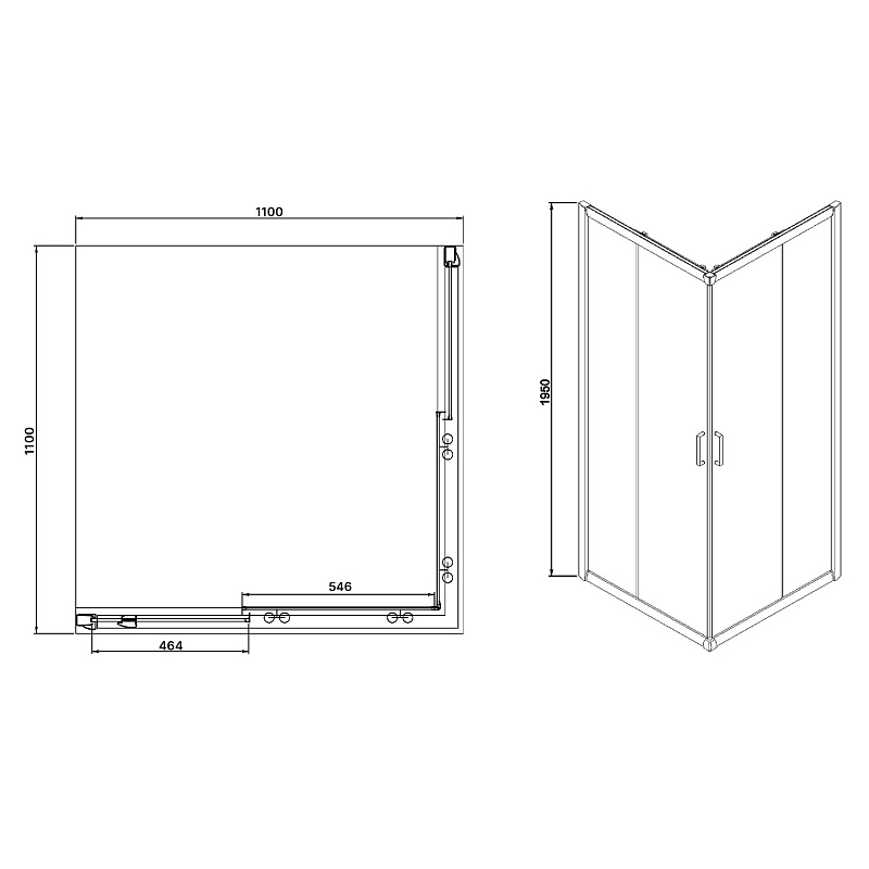 Душевое ограждение Azario GREENWOOD 1100х1100х1950, БЕЗ ПОДДОНА, прозрачное стекло 6 мм, цвет профиля серебро (AZ-NNE1142 1100)