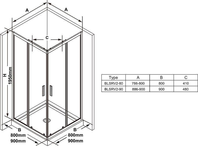 —Душевое ограждение Ravak Blix BLSRV2-90 90x90 стекло Transparent, профиль Черный (X1LM70300Z1)