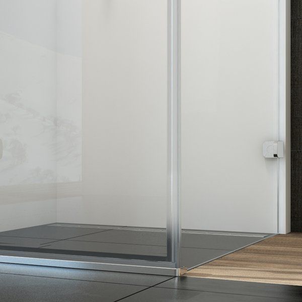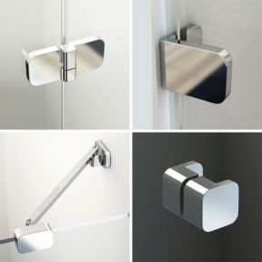 Петли не имеют выступающих частей изнутри душевого угла, что облегчает его обслуживание. Подъемный механизм петель обеспечивает автоматический подъём и опускание двери при открытии и закрытии. Чистый металл и массивное исполнение эргономичной ручки подчеркивают величественное впечатление от всего душевого уголка. Один короткий держатель стекла обеспечивает максимальную стабильность изделия.