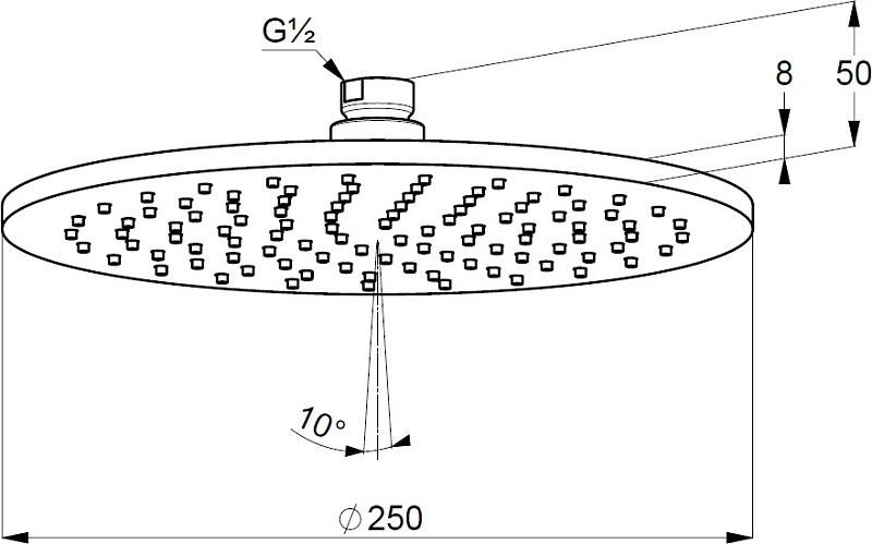 Размер верхнего душа: 25 см