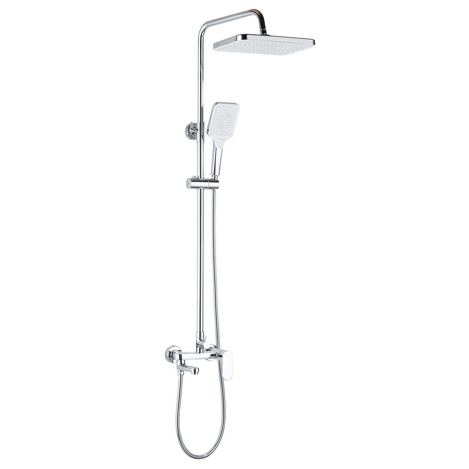 —Душевая колонна Azario Аризона со смесителем для ванны, с поворотным изливом, прямоугольная, хром (AZ-20S)