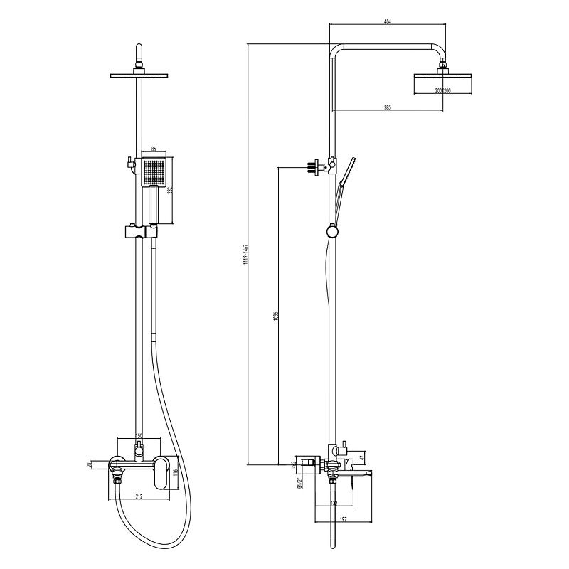 Душевая система Florida Square с квадратным тропическим душем и квадратной лейкой. Поворотный излив