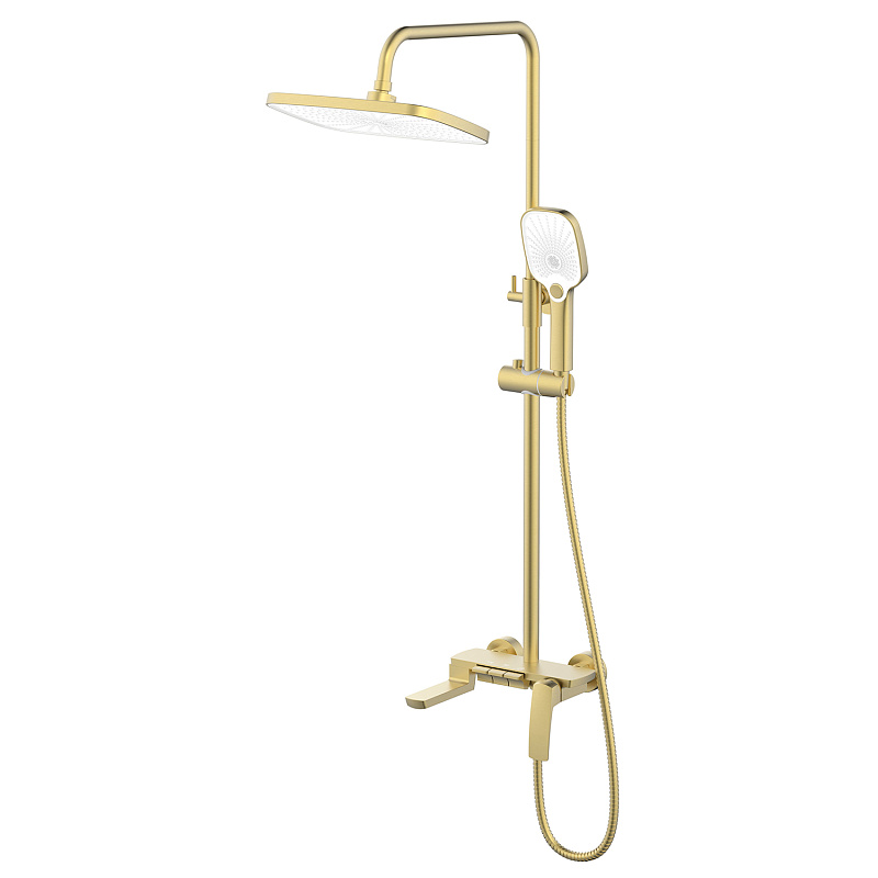 —Душевая система Azario Конда с квадратным тропическим душем, керамический картридж, шланг 150 см, золото матовое (AZ-K2311MG)