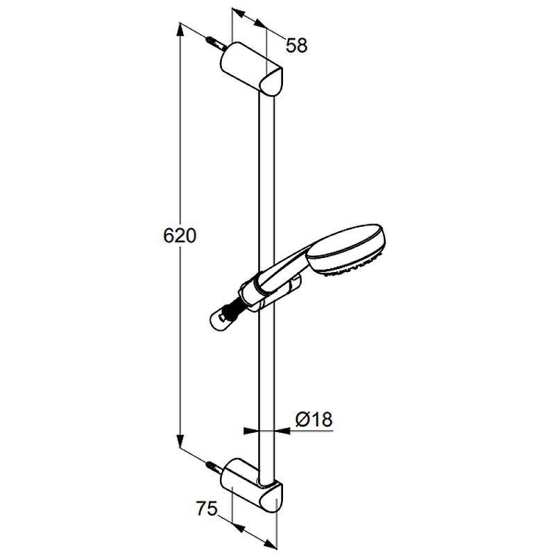 В комплекте поставки: ручная душевая лейка, держатель, шланг, настенная штанга, комплект креплений.