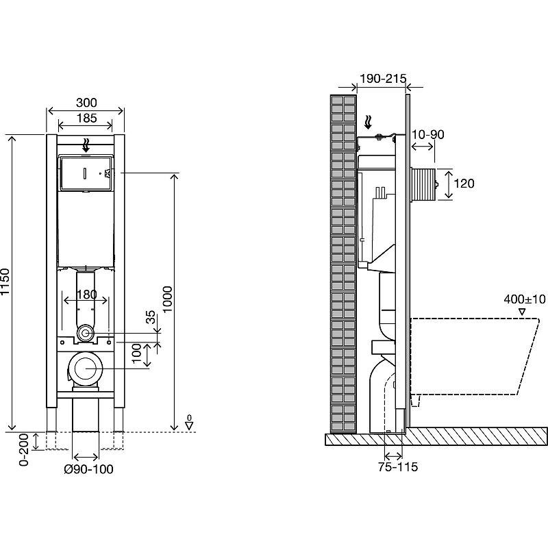 Инсталляция Jacob Delafon E33130RU-NF для подвесного унитаза со смывным бачком.