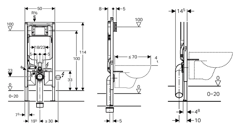 Инсталляция Geberit Duofix Sigma 8 111.796.00.1 со смывным бачком, для подвесного унитаза с малой контактной поверхностью.