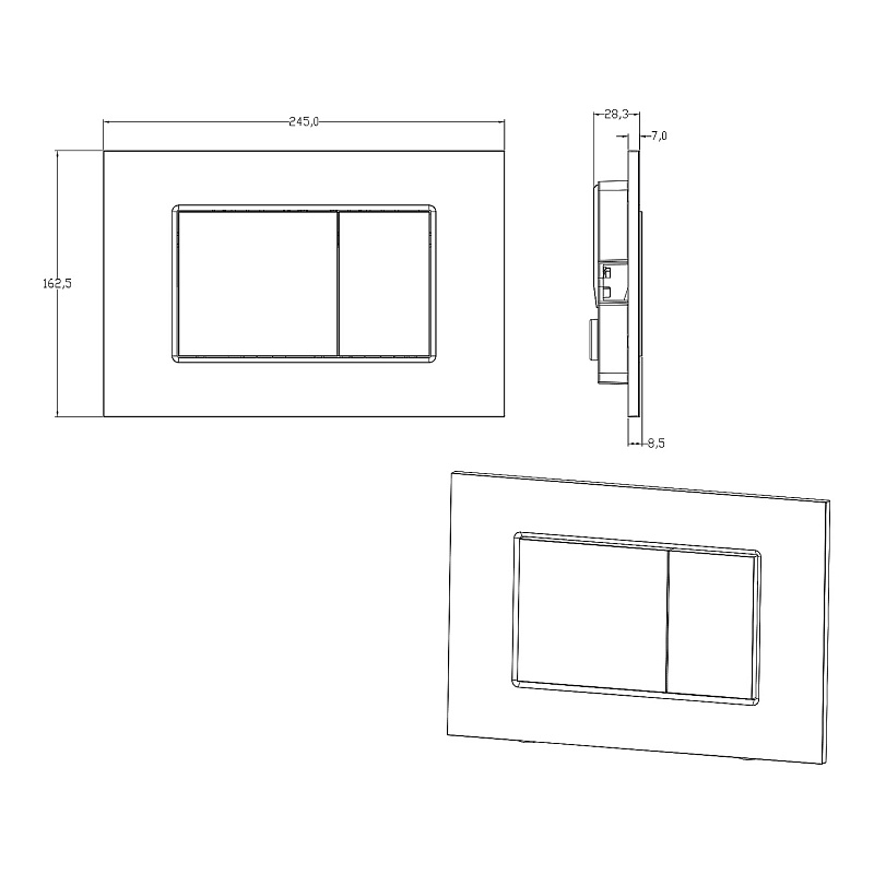 —Кнопка смыва AZARIO NEW-TS механическая, двойной смыв, квадратные кнопки, ABS пластик, черный (AZ-ABS-001-B)
