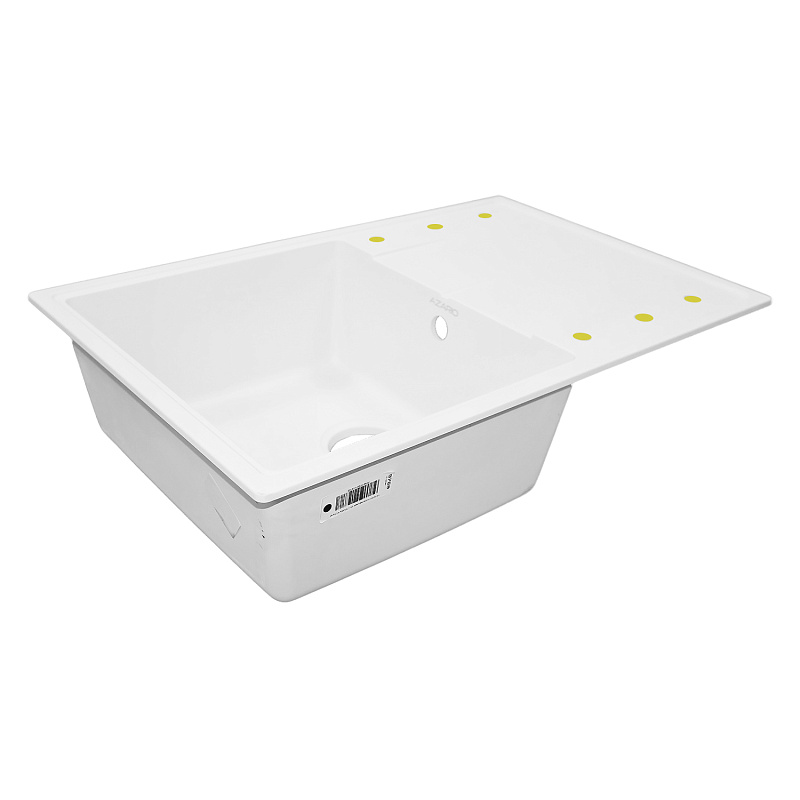 Кухонная мойка AZARIO Izmir 740х480х197 кварцевая, прямоугольная, сифон в комплекте, цвет Белый (CS00097681)
