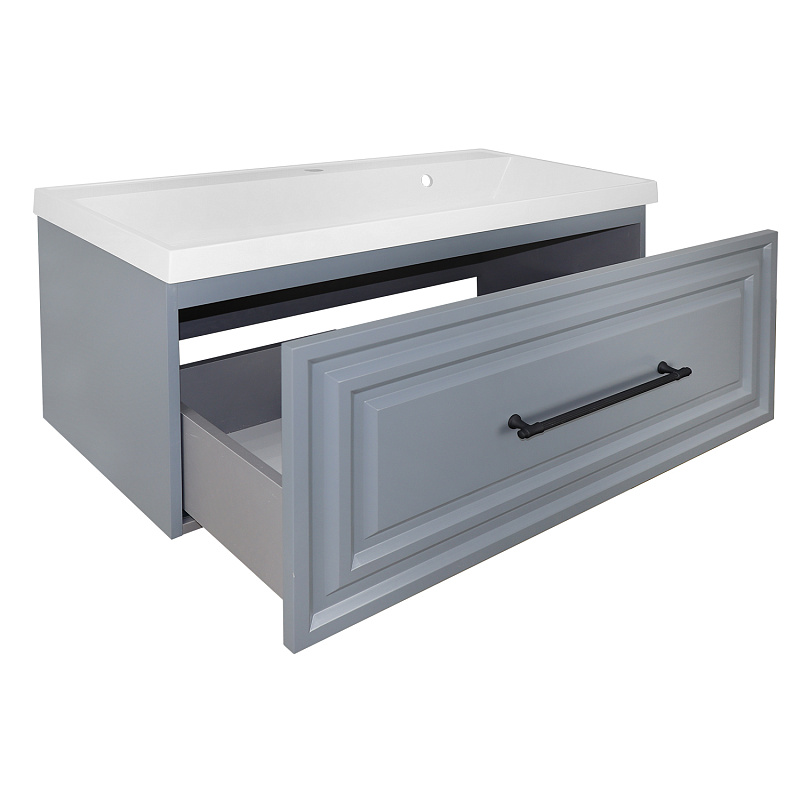 —Комплект Тумба Azario LAURA 100 1000х450х455 подвесная, с раковиной CLASSIK 100, серый матовый, фурнитура черная (CS00104005)