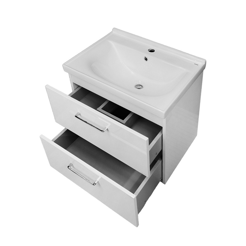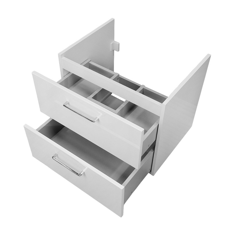 Два выдвижных ящика: Просторные ящики с механизмом доводчика обеспечивают плавное и бесшумное закрывание, предотвращая удары и продлевая срок службы мебели. Это идеальное место для хранения полотенец, косметики, бытовой химии и других необходимых мелочей, поддерживая порядок в ванной комнате.