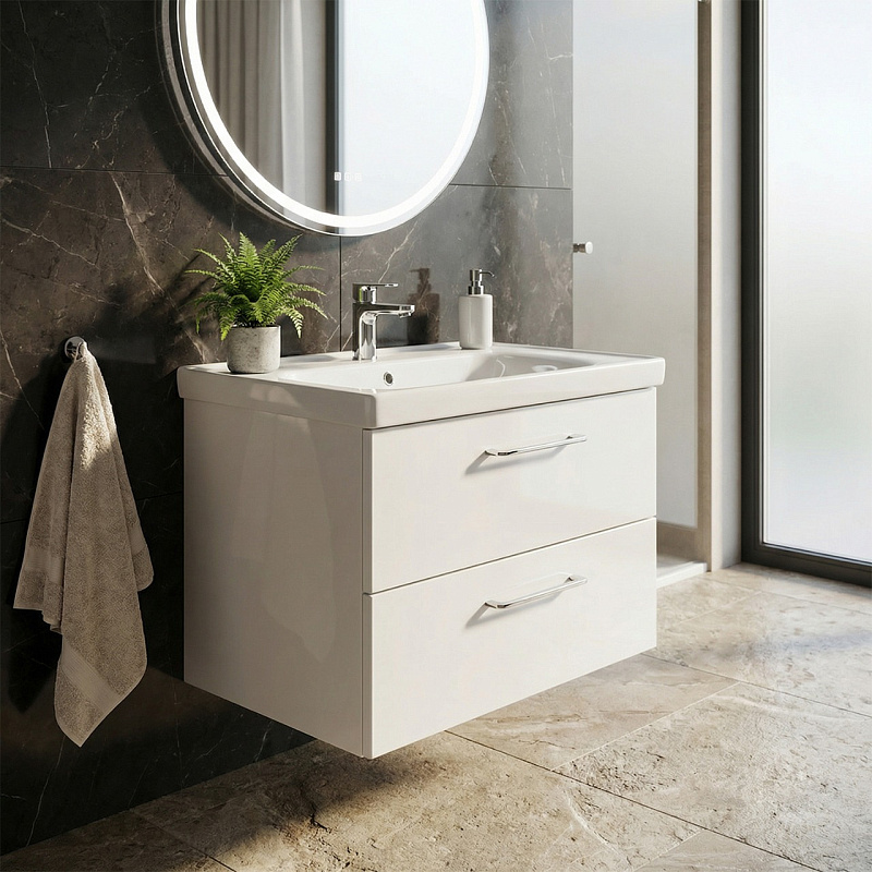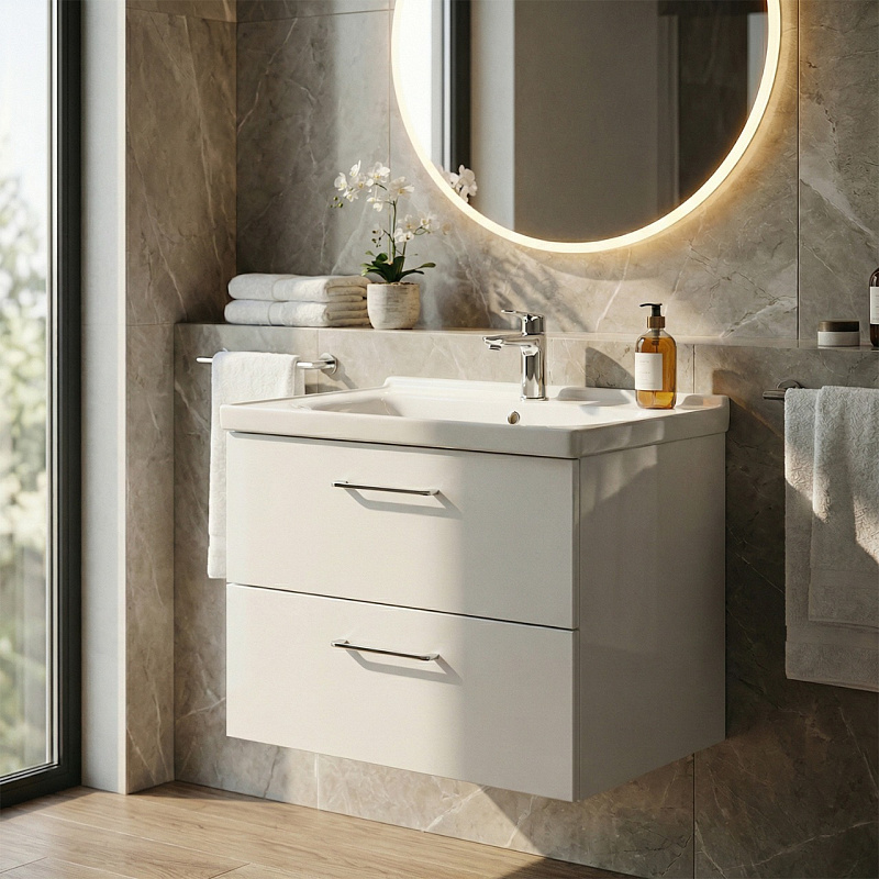 Высокое качество материалов: Использование МДФ, глянцевой эмали и санфаянса гарантирует долговечность и устойчивость к воздействию влаги и перепадам температур.