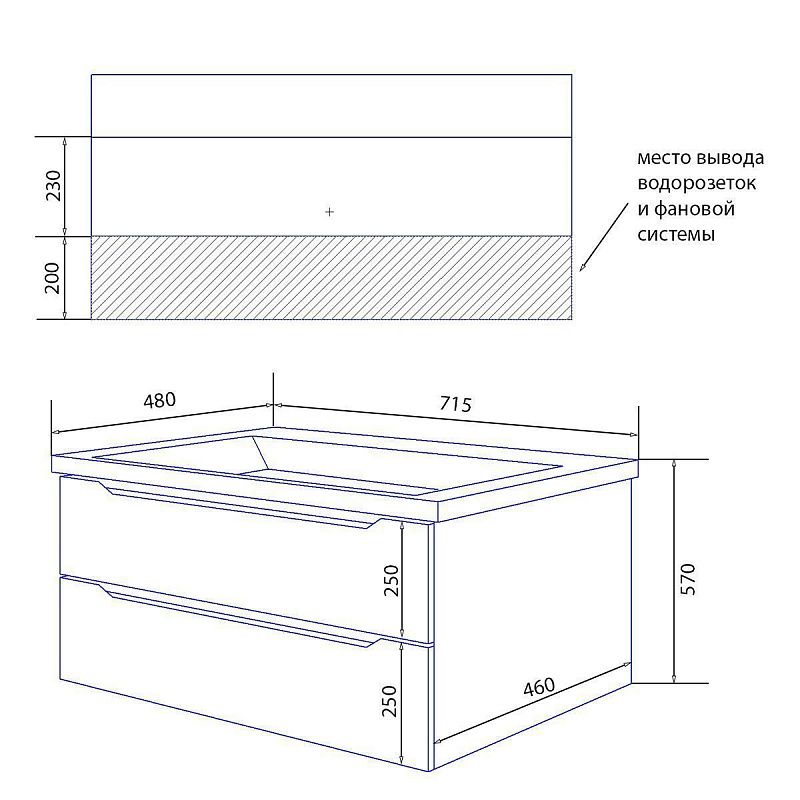 —Комплект Тумба Azario LOTOS 70/2 715х480х570 подвесная с раковиной Monte 70 (CS00083930)