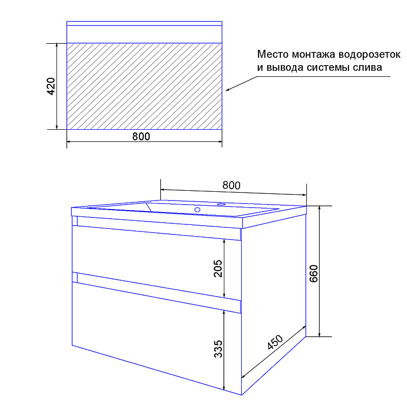 Комплектуется раковиной из литьевого мрамора Слим 80 (Сан Марко).