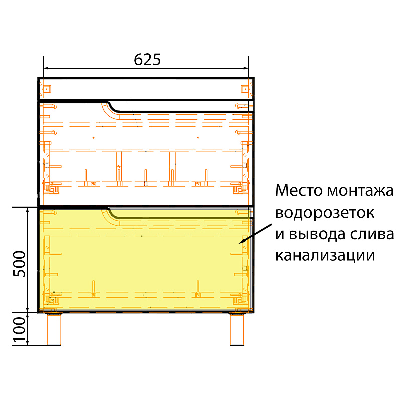 Вырез под обвод сантехнический обработан грунтом.