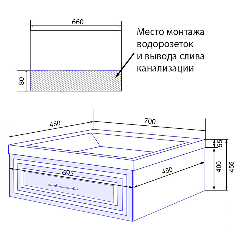 Тумба, ручки, полка, набор для монтажа, раковина из литьевого мрамора