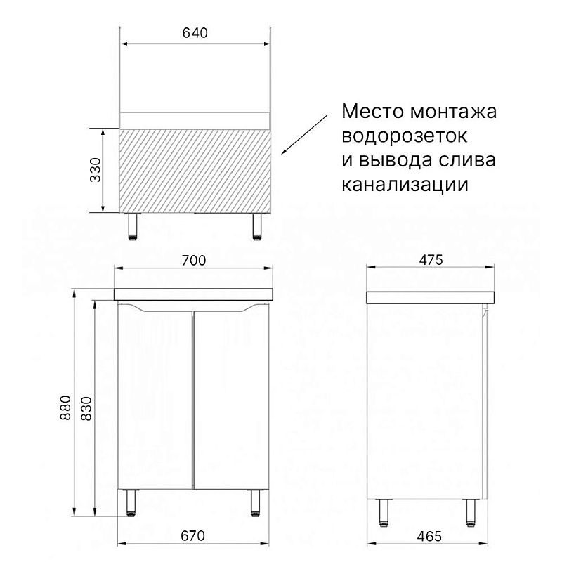 —Комплект Аzario Тумба LOTOS 70 Н 700х475х880 напольная, с раковиной Monte 70, белый глянцевый (CS00105741)