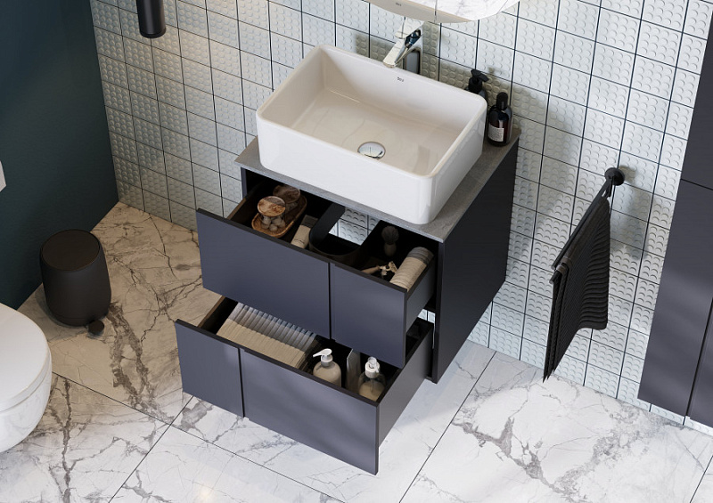 Модуль под раковину Pilar - стильное и функциональное решение для ванной комнаты. Высококачественная МДФ в матовой плёнке обеспечивает защиту от влаги и безупречный внешний вид на долгие годы. Благодаря системе push-to-open открытие ящиков происходит лёгким нажатием, что делает использование модуля максимально удобным. Отсутствие лицевой фурнитуры и уникальная фрезеровка на фасадах придают модулю современный вид, соответствующий тенденциям футуризма.