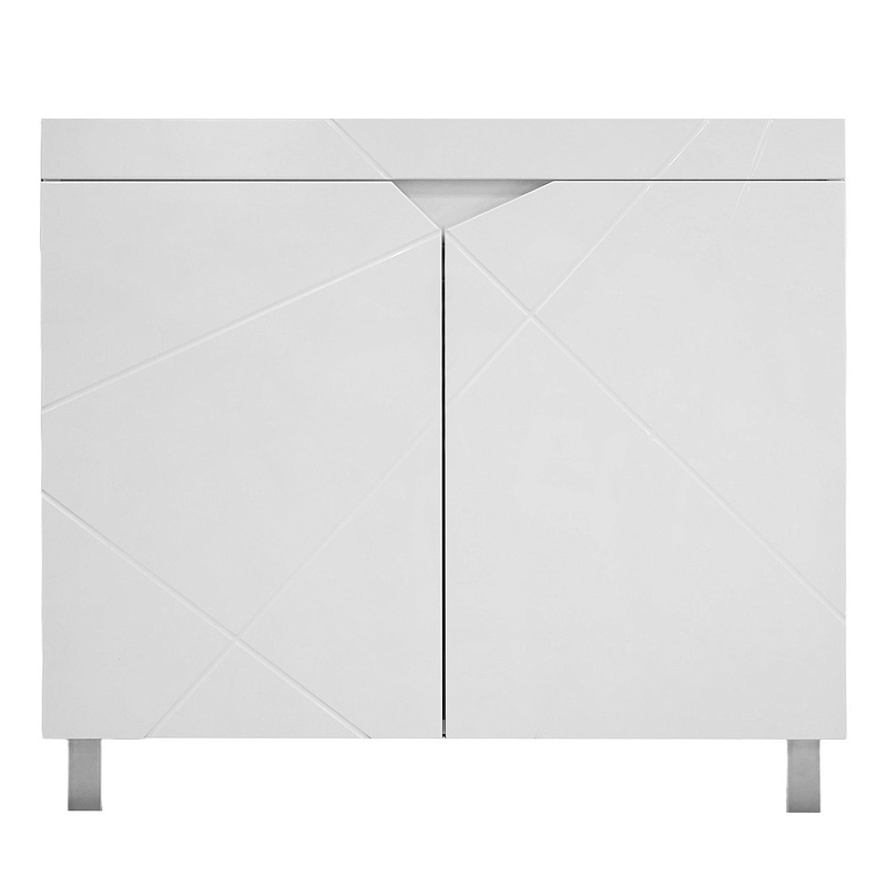 Модели одного комплекта (набора) мебели Оптимум выполнены в едином архитектурно-художественном и конструктивно-технологическом решении. Фасады имеют геометрическую фрезеровку с встроенной ручкой. Классический конструктив тумб под раковину с двумя дверцами и полкой позволяет удобно разместить бытовую химию, косметические средства и все необходимое.