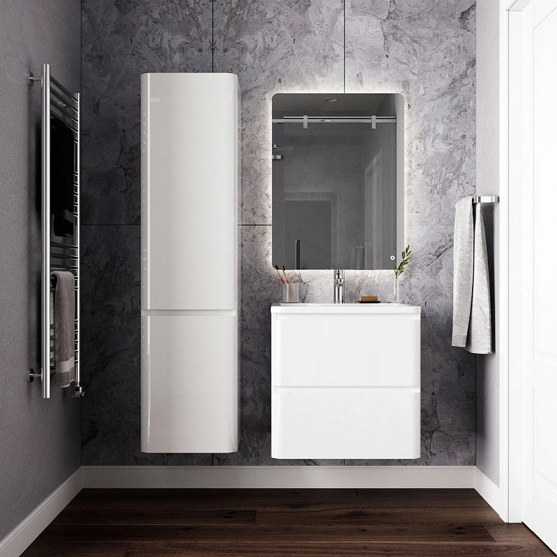 Идеальный белый глянец в сочетании с современным лаконичным дизайном-это коллекция Roberto.Эстетика изящества и минимализма-скругленные фасады,фрезерованные ручки,умывальник из литьевого мрамора,со скругленными углами.Подвесная тумба выполнена из влагозащищенного МДФ,покрытого белоснежной глянцевой эмалью.Качественная фурнитура с доводчиками.Плавное и бесшумное закрывание ящиков.Универсальный пластиковый вырез под сифон.Умывальник из литьевого мрамора полностью закрывает корпус тумбы,что обеспечивает дополнительную защиту от воды.Подвесной способ установки дает возможность не только визуально увеличить пространство, но и обеспечивает быстрый и удобный доступ для уборки.Мебель способна вместить в себя достаточно много вещей.Изысканность,простота и гармоничность-все сошлось в этой прекрасной коллекции!