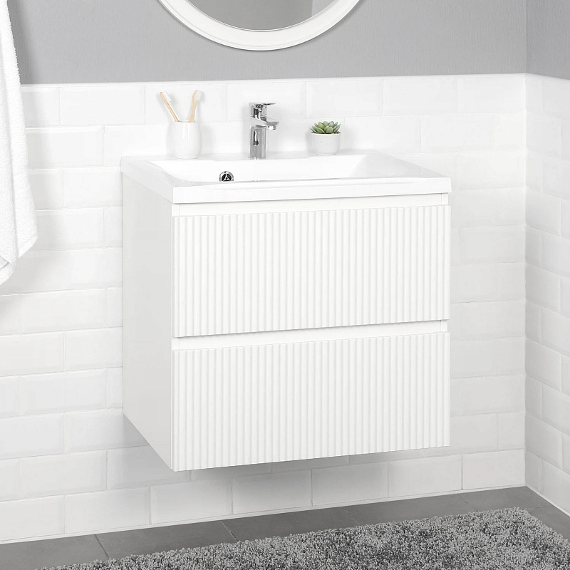 Коллекция Kate - воплотила в себе тренд на фактурные фасады. Идеальный "рубчик" - простое и стильное дизайнерское решение для декорирования фасадов - эта мебель бесспорно станет украшением современной ванной комнаты. Коллекция выполнена из МДФ и покрыта ПВХ пленкой, что делает её устойчивой к влаге, а значит долговечной. Удобные фрезерованные ручки, качественная фурнитура с доводчиками, вместительность - мы продумали все, чтобы мебель была не просто красивой, но еще и функциональной, приятной в использовании.