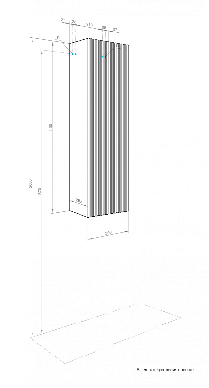 —Пенал подвесной AQUATON Ар-Деко универсальный, кашемир (1A280503DD6E0)