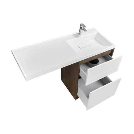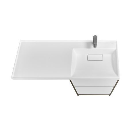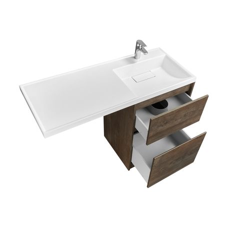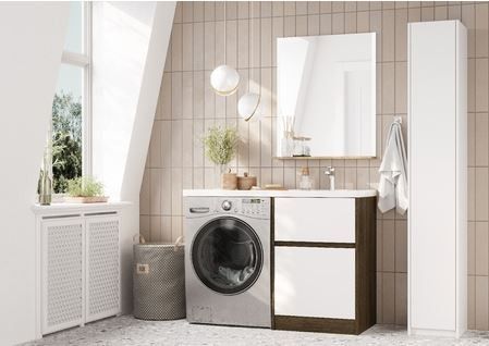 Тумба Лондри под стиральную машину выполнена из влагостойкой ламинированной плиты в древесной отделке. Корпус тумбы и фасад приобретаются отдельно. Тумбы комплектуются фасадами как с такой же древесной текстурой, так и в универсальном белом глянцевом цвете – это позволяет выбрать модель тумбы в соответствии с личными предпочтениями, создав наиболее удачное решение для конкретного интерьера ванной комнаты. Верхний ящик открывается с помощью системы push-to-open, а нижний - за фасад с помощью удобного выпила под углом. Ящики выдерживают нагрузку до 25 кг. Тумба установлена на регулируемые опоры, которые находятся за цоколем. Тумба комплектуется раковиной Лондри 120 из прочного литого мрамора, который устойчив к воздействию химических средств. Широкое крыло раковины обеспечивает ванную комнату дополнительным функциональным пространством. Дополнительно к тумбе можно приобрести шкаф-колонну Лондри и зеркальный шкаф Лондри 120.