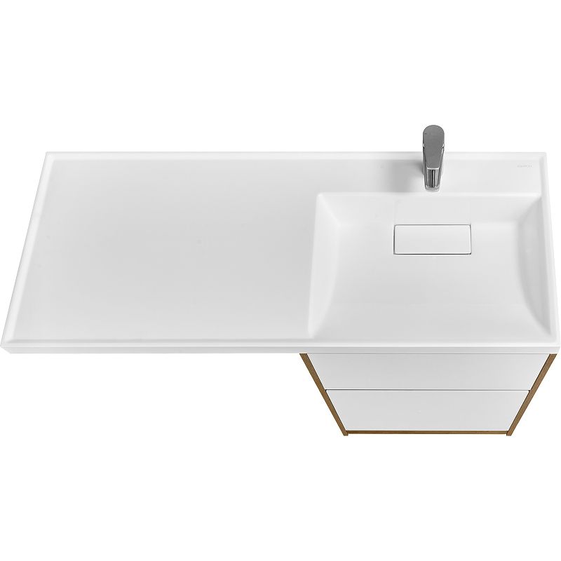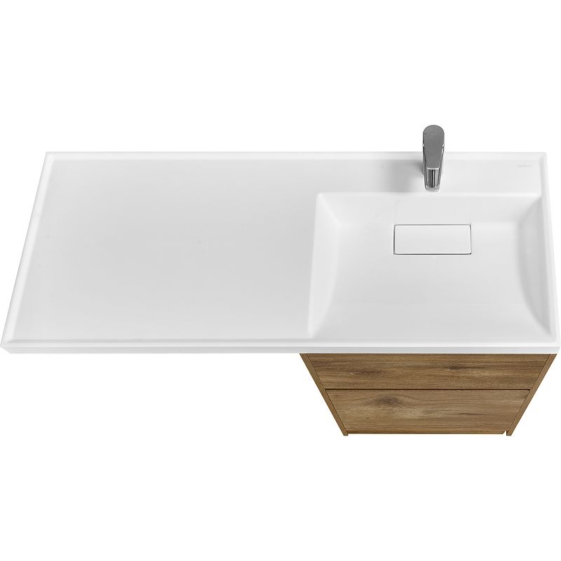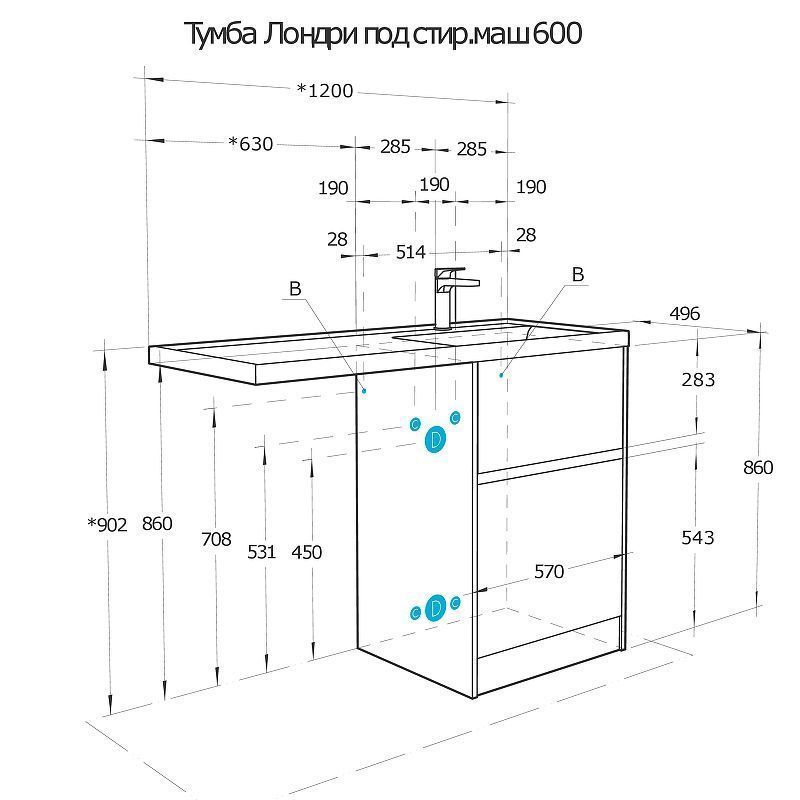 Тумба Лондри под стиральную машину выполнена из влагостойкой ламинированной плиты в древесной отделке. Корпус тумбы и фасад приобретаются отдельно. Тумбы комплектуются фасадами как с такой же древесной текстурой, так и в универсальном белом глянцевом цвете – это позволяет выбрать модель тумбы в соответствии с личными предпочтениями, создав наиболее удачное решение для конкретного интерьера ванной комнаты. Верхний ящик открывается с помощью системы push-to-open, а нижний - за фасад с помощью удобного выпила под углом. Ящики выдерживают нагрузку до 25 кг. Тумба установлена на регулируемые опоры, которые находятся за цоколем. Тумба комплектуется раковиной Лондри 120 из прочного литого мрамора, который устойчив к воздействию химических средств. Широкое крыло раковины обеспечивает ванную комнату дополнительным функциональным пространством. Дополнительно к тумбе можно приобрести шкаф-колонну Лондри и зеркальный шкаф Лондри 120.