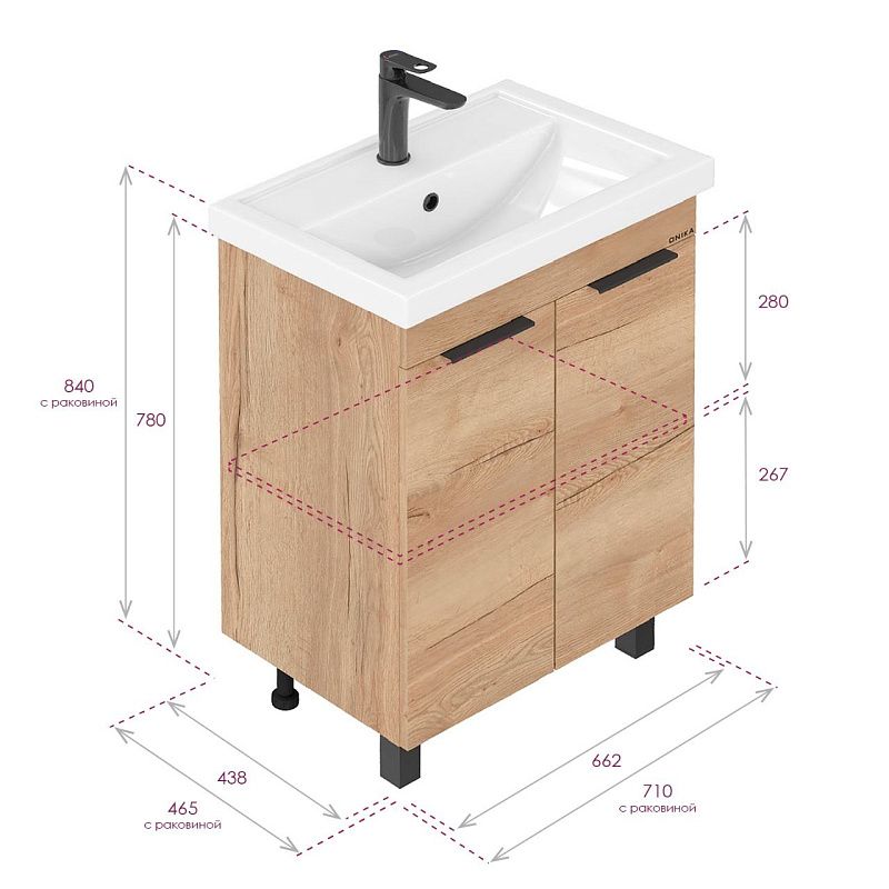 Тумба напольная Onika Легран 70 Дуб галифакс (БЕЗ УМЫВАЛЬНИКА Фостер-70) (107067)