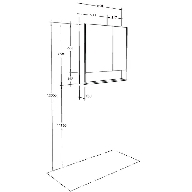 Внутреннее пространство зеркального шкафа разделено на ассиметричные секции, которые позволят хранить косметические средства различного объема и высоты. По желанию можно дополнительно приобрести светильник Fagus.