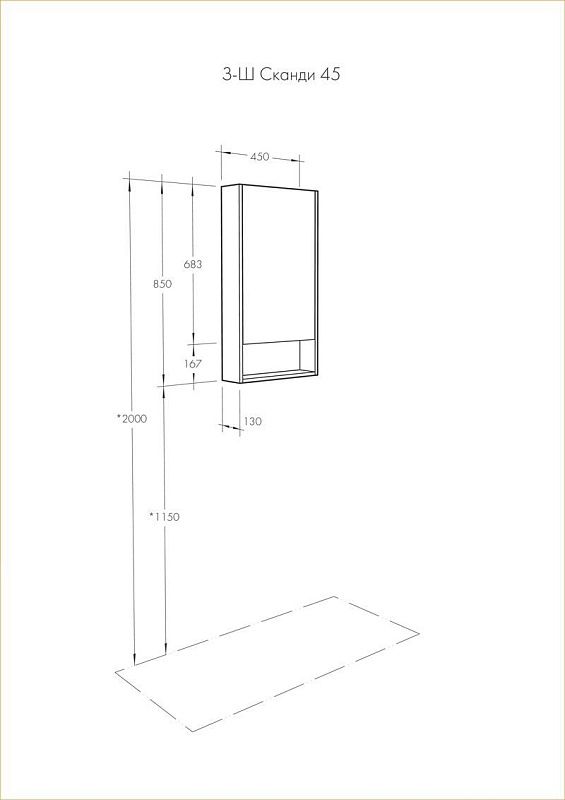 —Зеркало-шкаф AQUATON Сканди 45 дуб рустикальный (1A252002SDZ90)