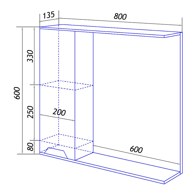 —Зеркало-шкаф Loranto Florena 80 800х135х600 левый, светлый бетон (CS00086988)