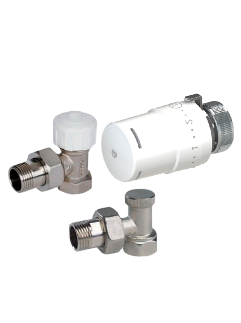 —Полный термокомплект для радиатора ARCO, угловой - латунь хромированная (880040+501275+507205) KCT01