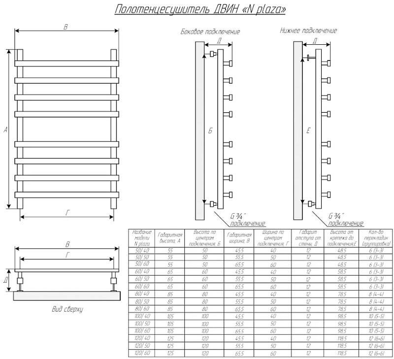 —Полотенцесушитель водяной Двин N plaza 50х80, Черный матовый