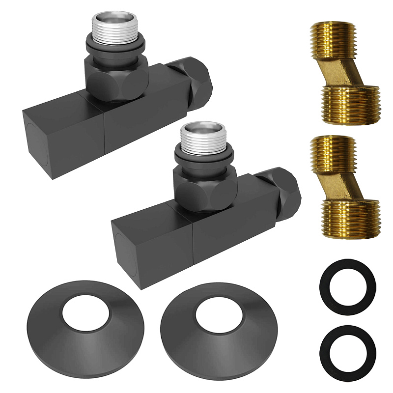 —Соединение угловое с квадратным вентилем для полотенцесушителей Azario гайка-штуцер 3/4"х1/2", графит (AZ83907FW)