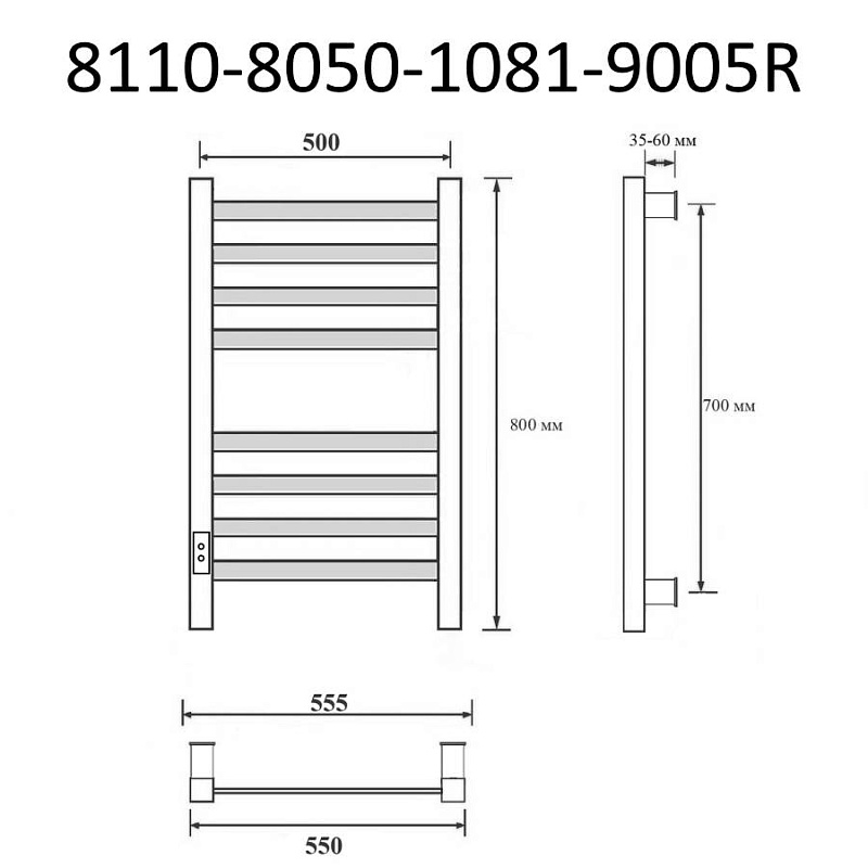 —Полотенцесушитель электр. Маргроид 50х80, Черный матовый