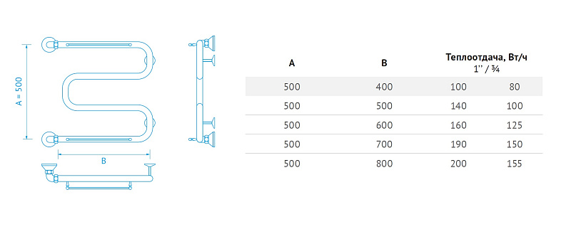 —Полотенцесушитель водяной Маргроид Вид 38 60х50, Хром