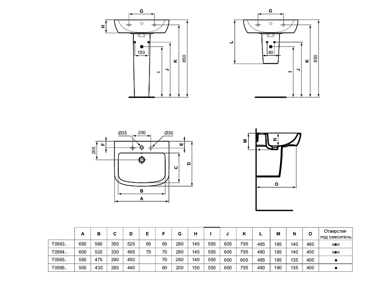 —Раковина Ideal Standard TEMPO 60х50 см, белая (T056401)