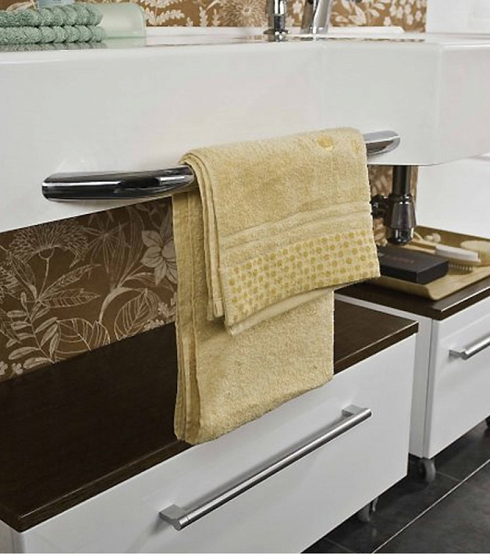 Раковина шириной 127 см, в которую встроен дозатор для жидкого мыла. Ее основные характеристики: большая и глубокая чаша, крыло, на котором можно разложить полезные мелочи, а также декоративный хромированный рейлинг, который можно использовать в качестве полотенцедержателя.