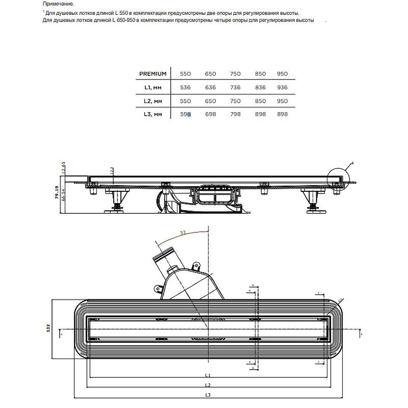 Вид решетки: двухсторонняя (с щелью для воды / под плитку).