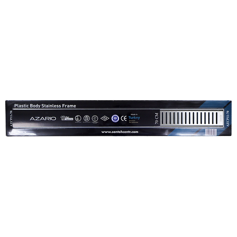 —Душевой лоток AZARIO STICK 700 мм, боковой слив D40, пластиковый, решетка из нержавеющей стали (AZCP11-70 Stick)