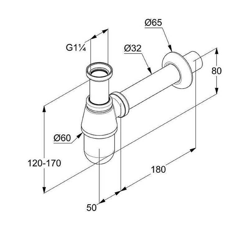 Сифон для раковины Kludi 1010505-00 бутылочного типа.