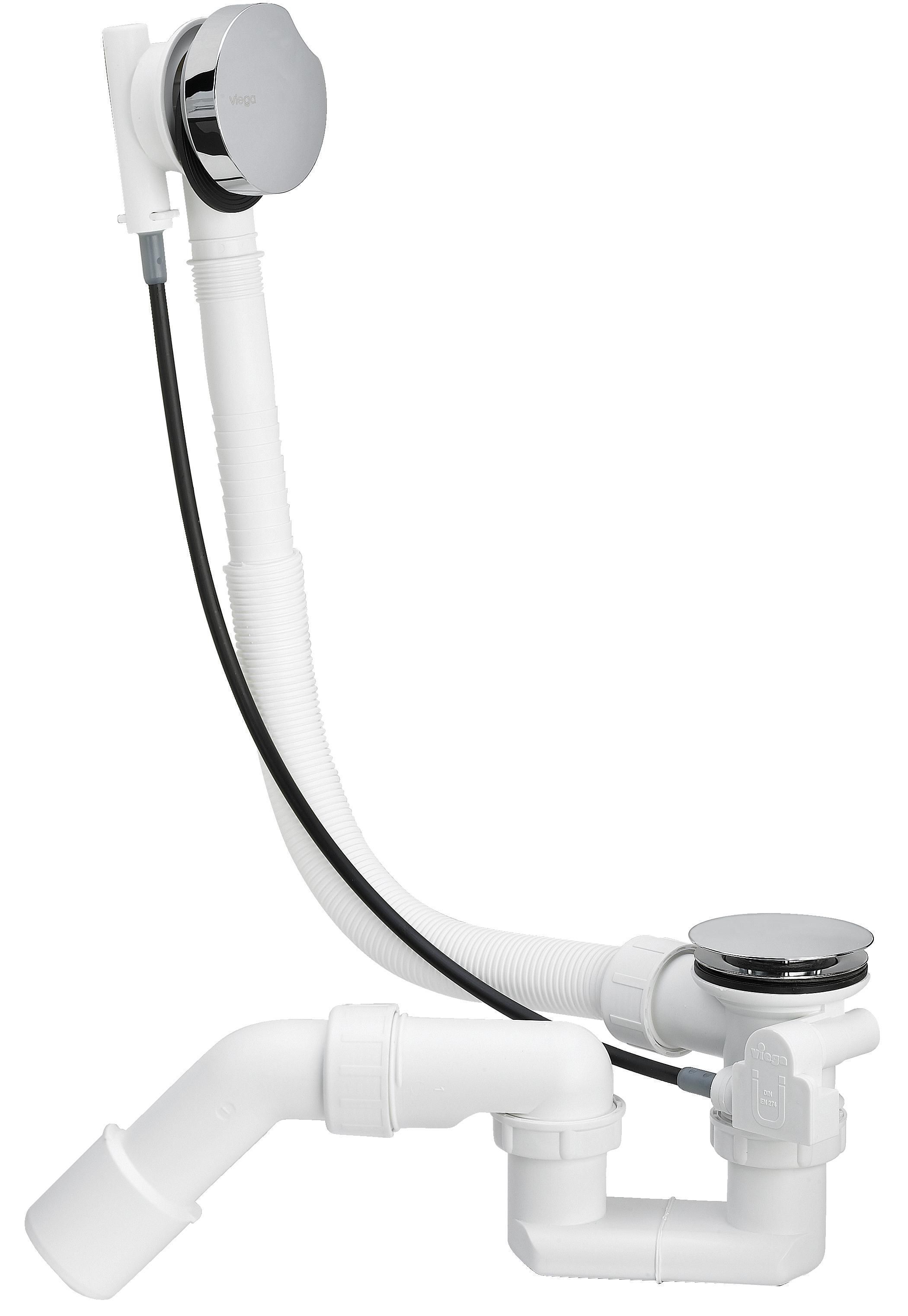 Комплектация: гибкая переливная труба, хромированная поворотная накладка переливного отверстия (верхняя), хромированная пробка донного клапана со штоком, гидрозатвор, сливное колено 45°, донный клапан - нержавеющая сталь.