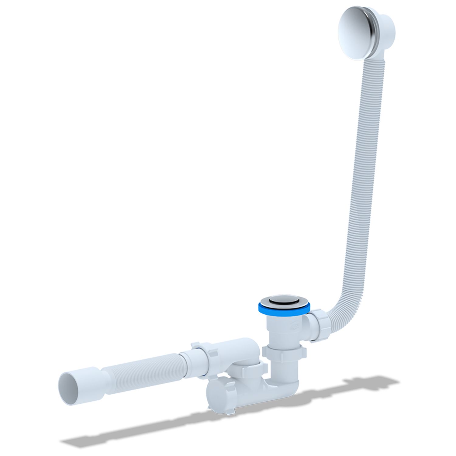 —Слив-перелив АНИ Пласт для ванны, автомат, регулируемый клик-клак 1 1/2"х40 с гофрой 40/50 с сеткой (EC255S)